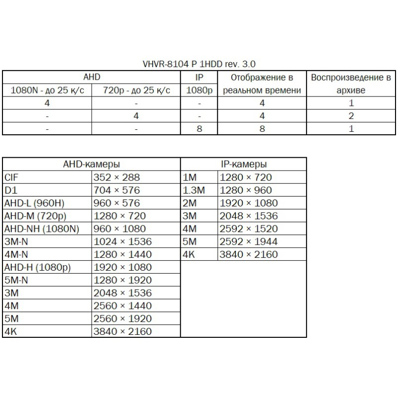 Разрешение записи AHD/TVI/CVI/CVBS камеры до 944х1080